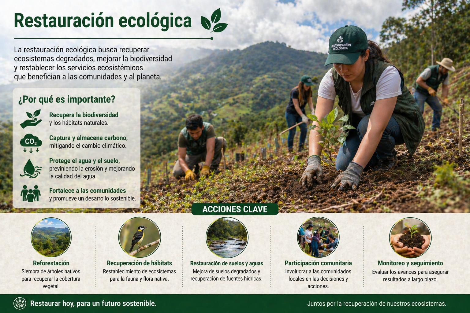 Recupera la composición original de especies y los procesos naturales del ecosistema degradado.